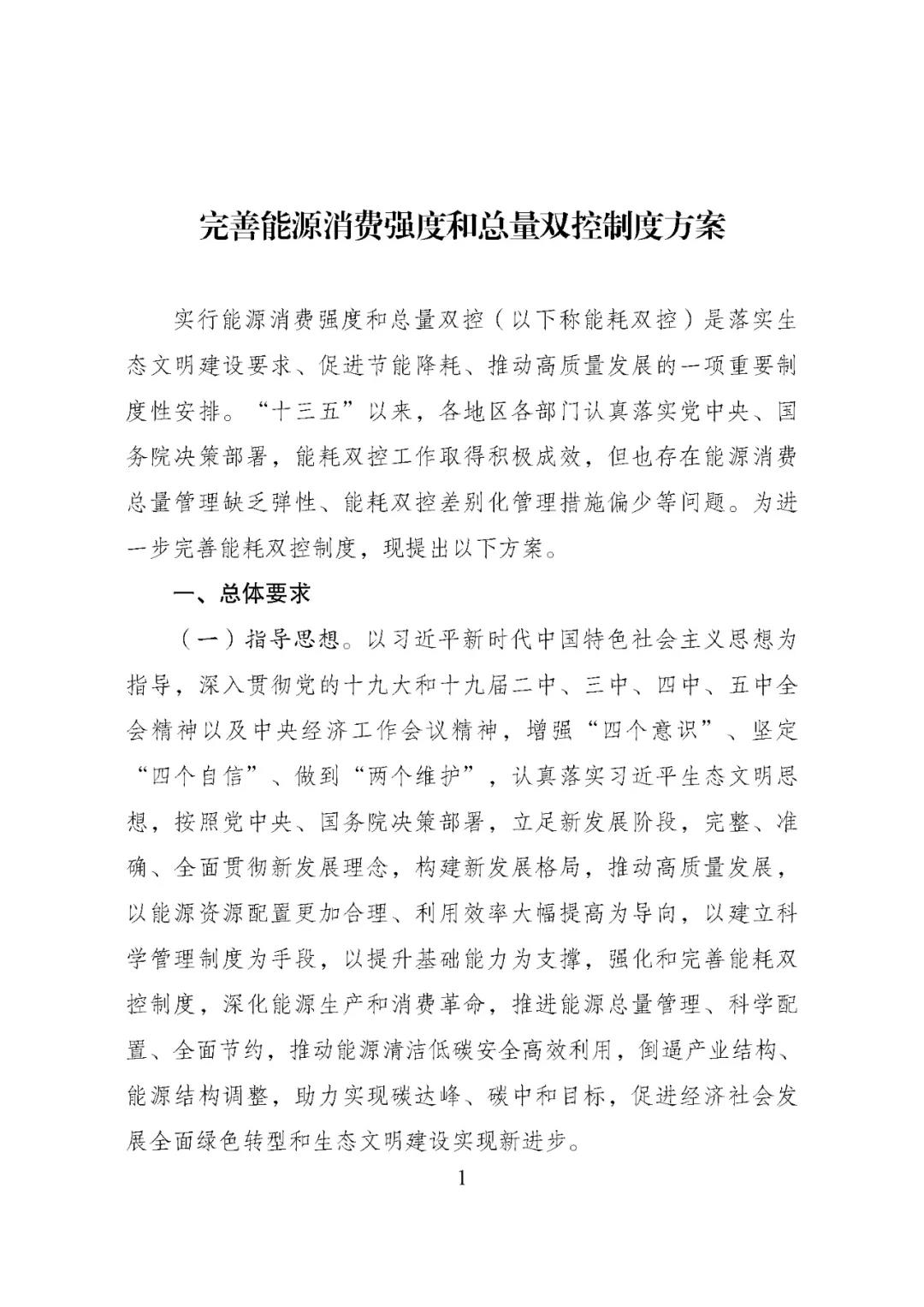國家發展改革委關于印發《完善能源消費強度和總量雙控制度方案》的通知