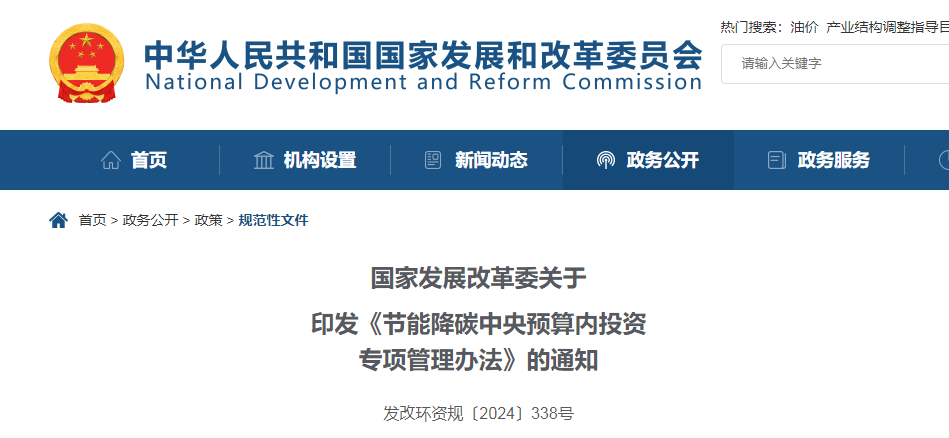 近日,國家發展改革委印發《節能降碳中央預算內投資專項管理辦法》的通知,對節能降碳項目進行補貼,支持資金最高不超過項目總投資的30%,單個項目支持資金原則上不超過1億元。