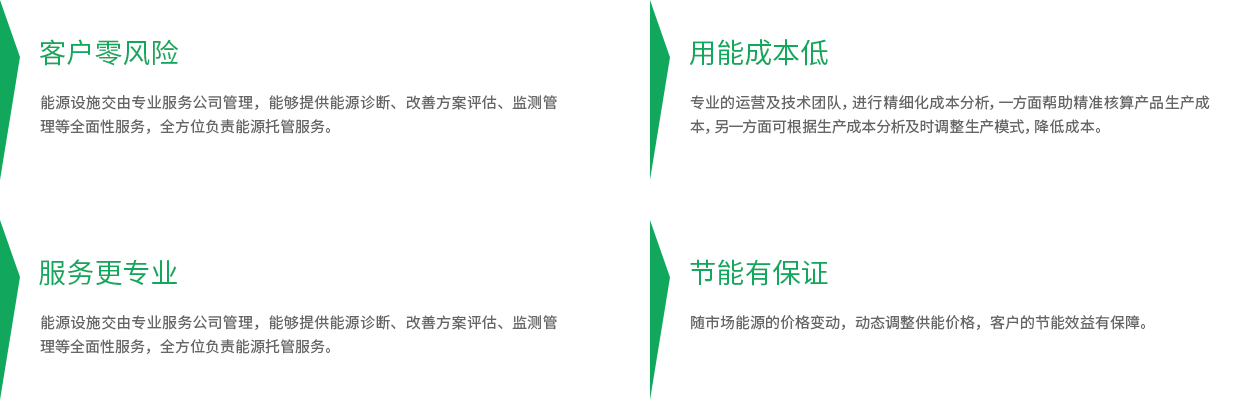 能源托管重在管理,對客戶提供能源專家型的增值服務;能夠根據(jù)客戶的能耗進行評估審計,制定客戶專屬的節(jié)能解決方案,對客戶的節(jié)能空間進行技術(shù)改造和管理,達到能源優(yōu)化、降本增效的目的。
